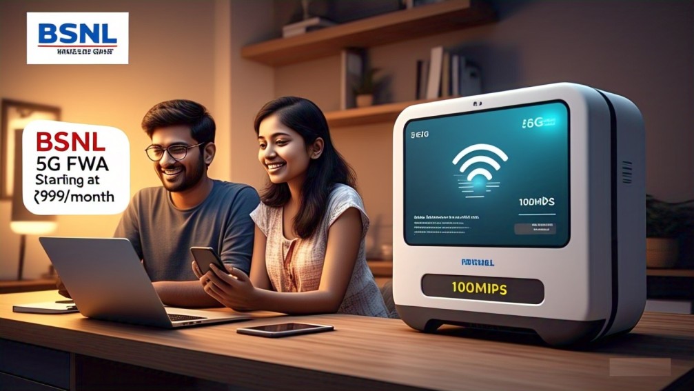 India’s state-run telecom giant BSNL is finally stepping into the 5G era, and it’s coming with a bold new plan to connect homes and businesses through Fixed Wireless Access (FWA). According to recent reports, BSNL’s 5G FWA services will kick off with plans starting at just ₹999 per month, offering users 100Mbps speeds — all without laying a single fiber cable.